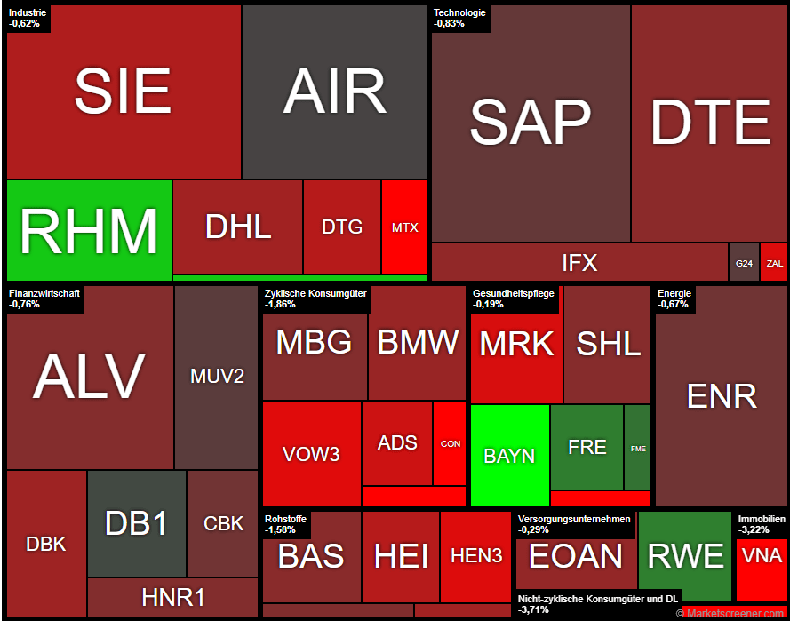 Das entspricht einer klaren Dominanz der Verkäufer und bestätigt das negative Gesamtbild des Handelstags.