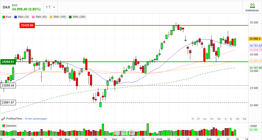Der DAX stabilisiert sich technisch und behauptet sich nahe der 25.000-Punkte-Schwelle.