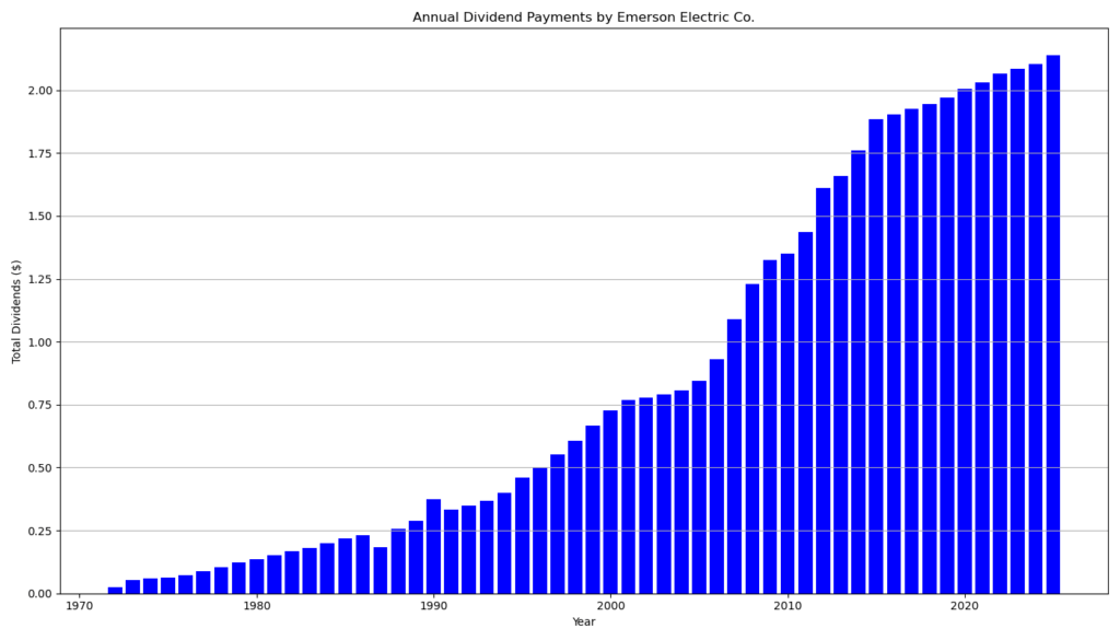 Die Dividende ist moderat, aber nachhaltig finanziert. Emerson bleibt ein klassischer Dividendenwachstumswert mit Fokus auf Kontinuität statt hoher Rendite.