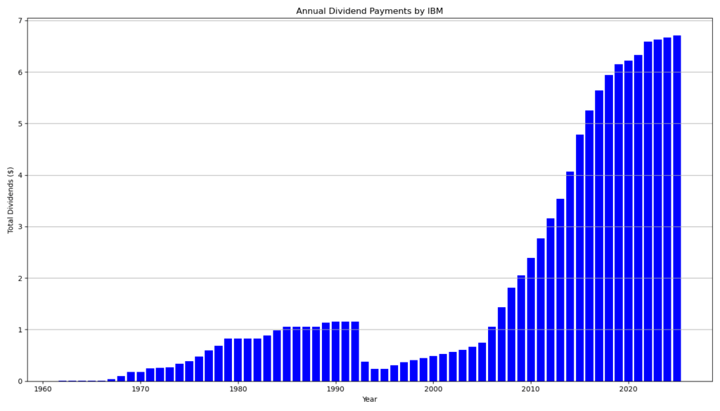 IBM blickt auf eine außergewöhnlich lange Dividendenhistorie zurück. Das Unternehmen zahlt seit 36 Jahren ununterbrochen Dividenden und weist 26 aufeinanderfolgende Jahre mit Dividendensteigerungen auf. In den letzten Jahren verlangsamte sich das Wachstum jedoch deutlich. Die Dividende wurde mehrfach nur minimal oder gar nicht erhöht. Die aktuelle Beibehaltung der Dividende bestätigt diesen Trend. IBM priorisiert inzwischen finanzielle Stabilität und Investitionen gegenüber dynamischem Dividendenwachstum. Die Nachhaltigkeit der Ausschüttung bleibt dennoch gegeben, da der Free Cashflow ausreichend hoch ist.