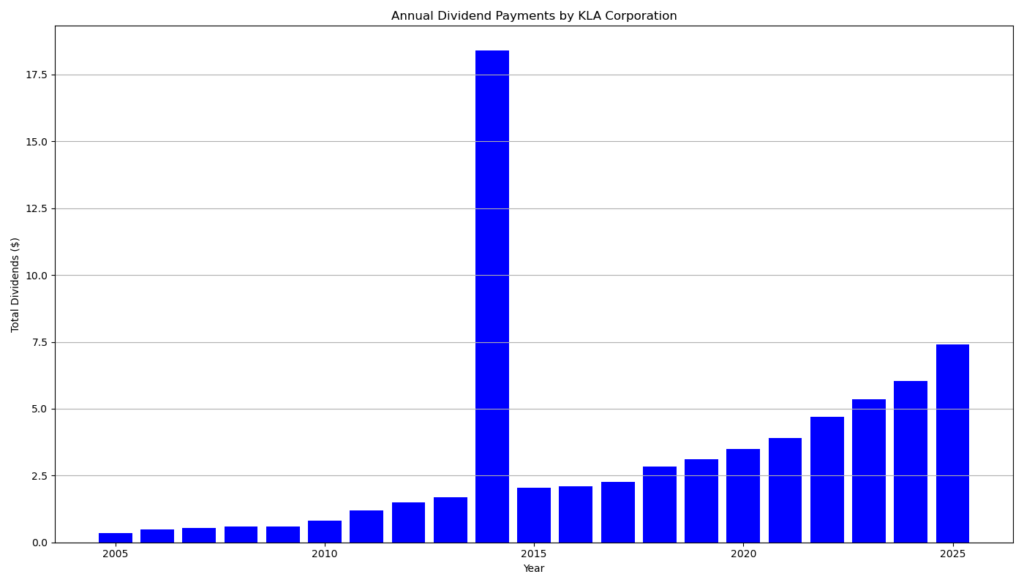 Die geringe Dividendenrendite sollte nicht isoliert betrachtet werden. Entscheidend ist die Kombination aus hohem Gewinnwachstum, stetig steigender Dividende und konservativer Ausschüttungspolitik. Für einkommensorientierte Anleger steht KLA weniger im Vordergrund. Für Investoren mit langfristigem Anlagehorizont und Fokus auf Dividendenwachstum bleibt die Aktie jedoch attraktiv.