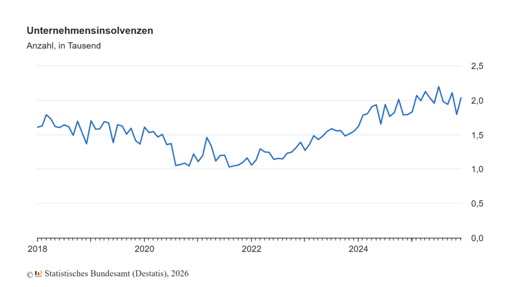 Die Daten zeigen einen deutlichen strukturellen Anstieg der Insolvenzen seit 2023. Gleichzeitig fällt auf: