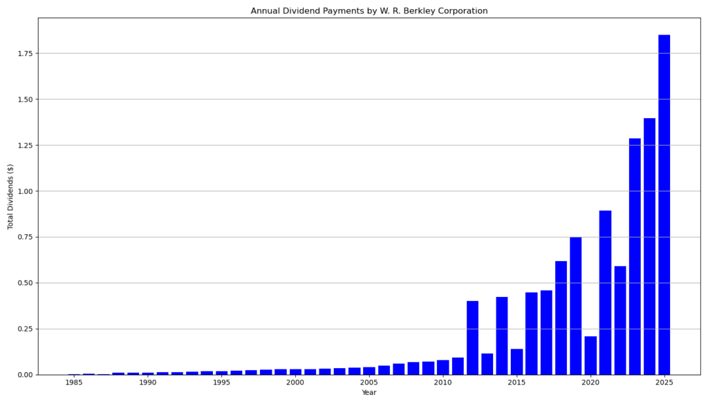 - Dividendenmodell: W. R. Berkley zahlt eine reguläre Dividende, setzt aber massiv auf Sonderdividenden (Special Dividends).