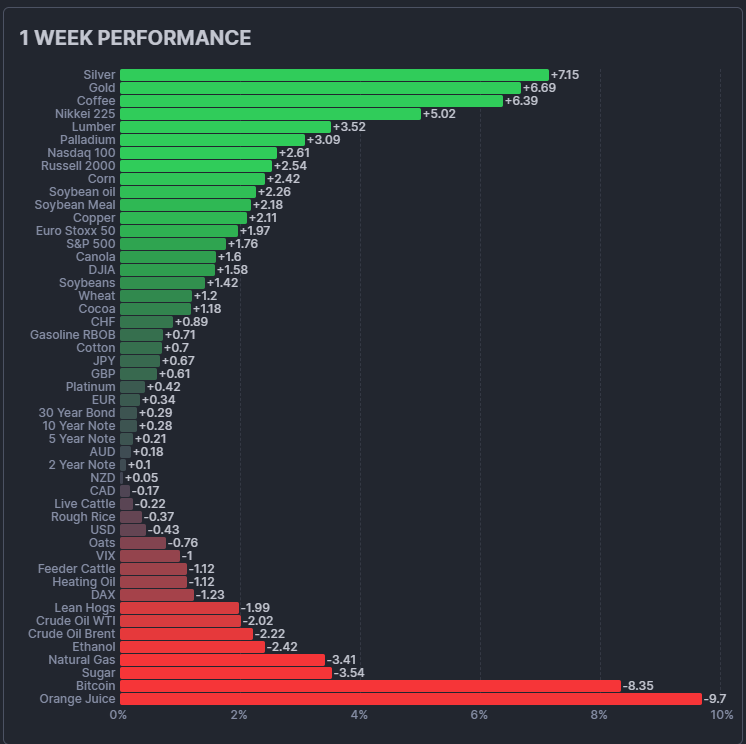 - Handelskonflikt USA-China: Die Woche war ein Paradebeispiel für marktbeeinflussende Rhetorik. Trumps anfängliche Drohungen lösten einen Ausverkauf aus, während seine späteren, gemäßigteren Kommentare eine Rallye auslösten. Dies unterstreicht die anhaltende Abhängigkeit der Märkte von politischen Entwicklungen.