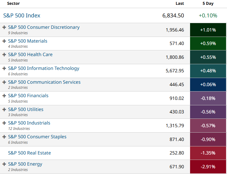 Sektorbewegungen spiegeln Konsum- und Investitionspfade: Stärke in Consumer Discretionary (Reisen/Freizeit) und Healthcare reflektierte reale Nachfrageimpulse, während Energy unter Angebotsüberhängen litt. Diese fundamentalen Differenzen verstärkten die Rotation.